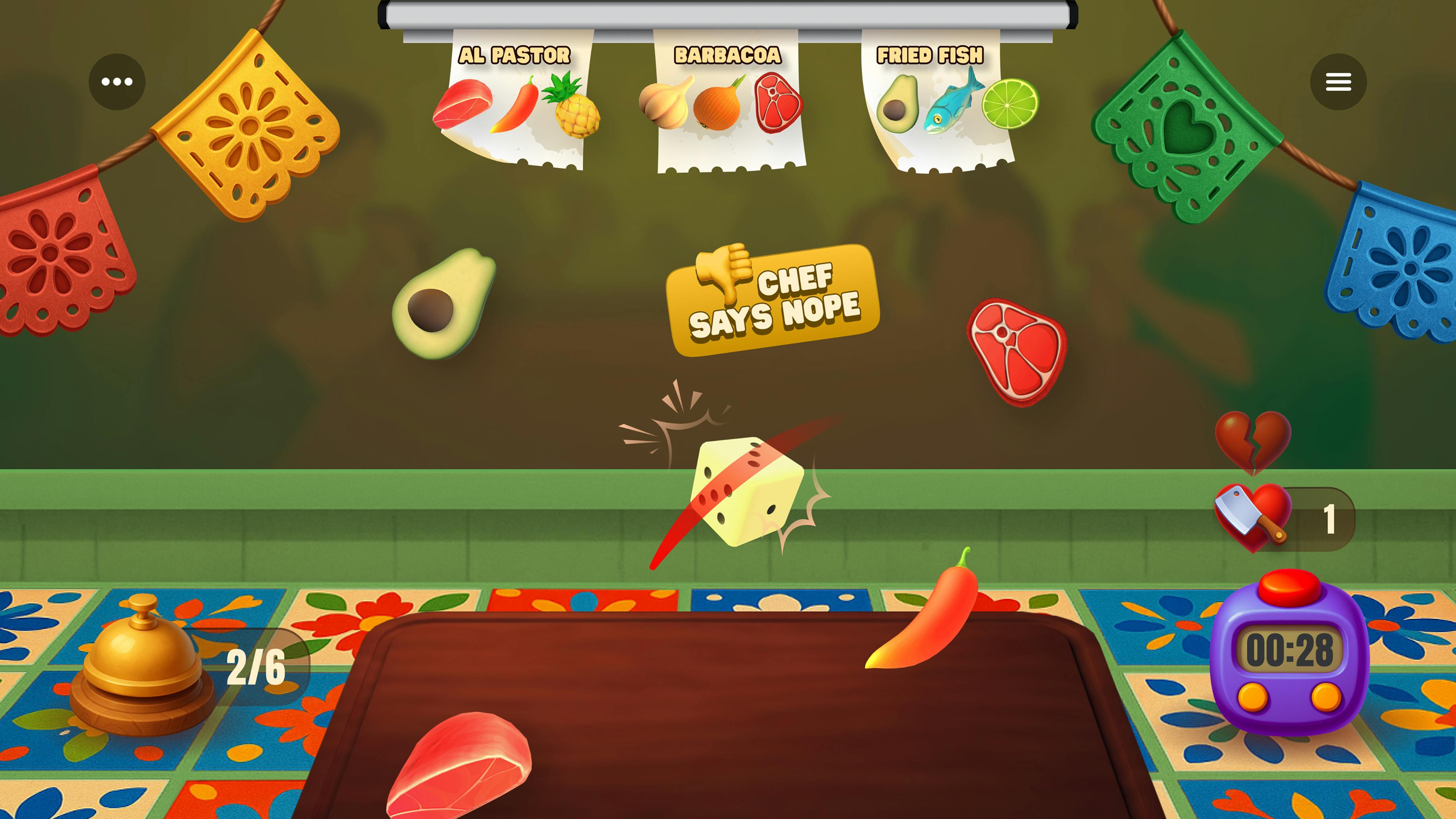 It is built around a simple and intuitive loop: chop ingredients flying through the screen, follow recipes and deliver dishes - and you better do it fast because the clock is ticking. As shifts progress, ingredients speed up, recipes get more complex, and distractions become more intense, creating natural difficulty progression. One too many mistakes, and you're cooked.